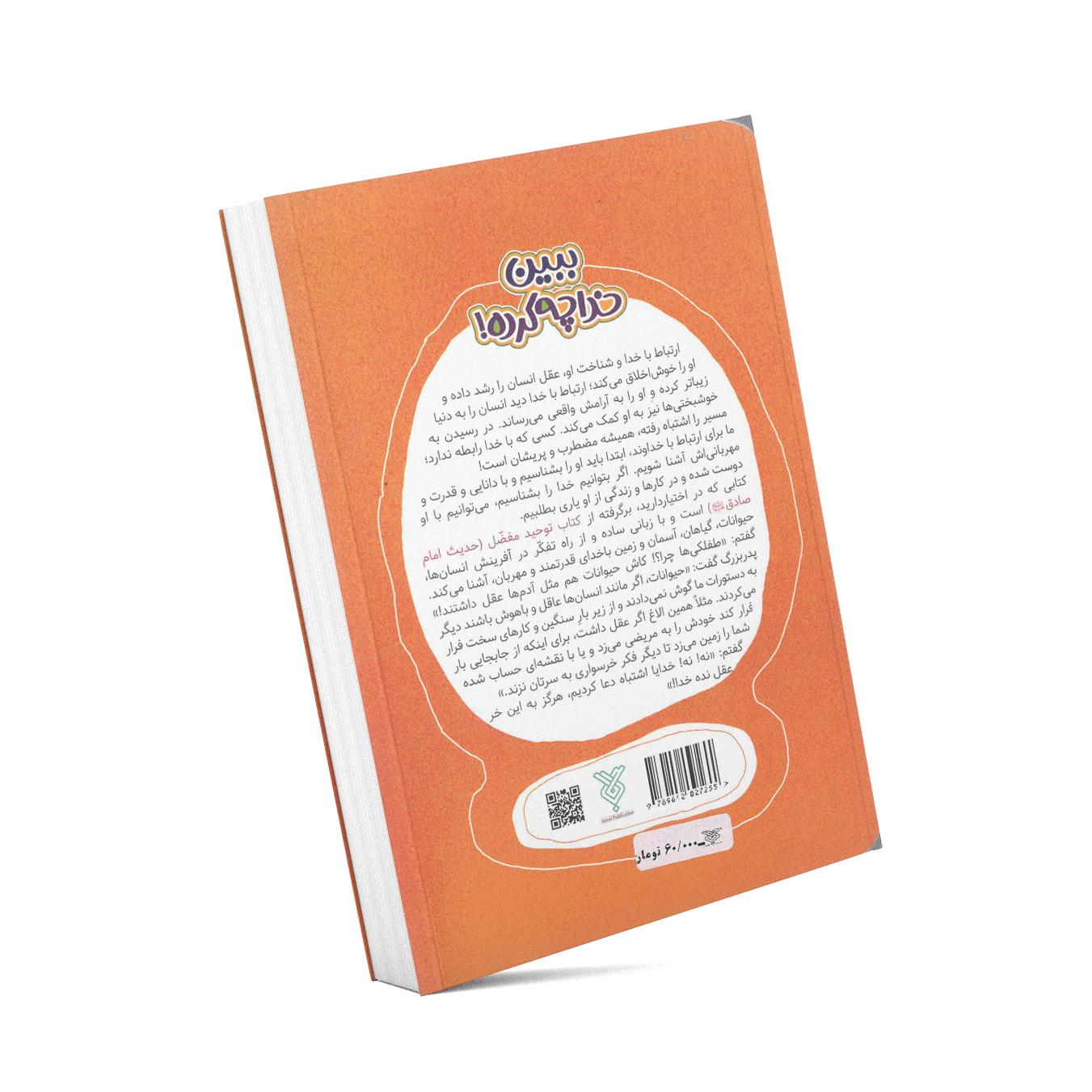 کتاب ببین خدا چه کرده داستان کوتاه برگرفته از کتاب شریف توحید مفضل، حدیث امام صادق علیه السلام، است که با زبانی ساده و از راه تفکر در آفرینش انسانها، حیوانات، گیاهان، آسمان و زمین باخدای قدرتمند و مهربان، آشنا میکند. اگر در جستجوی یک کتاب داستانی زیبا برای آموزش توحید به کودکان و نوجوانان هستید، این کتاب عالی است.
