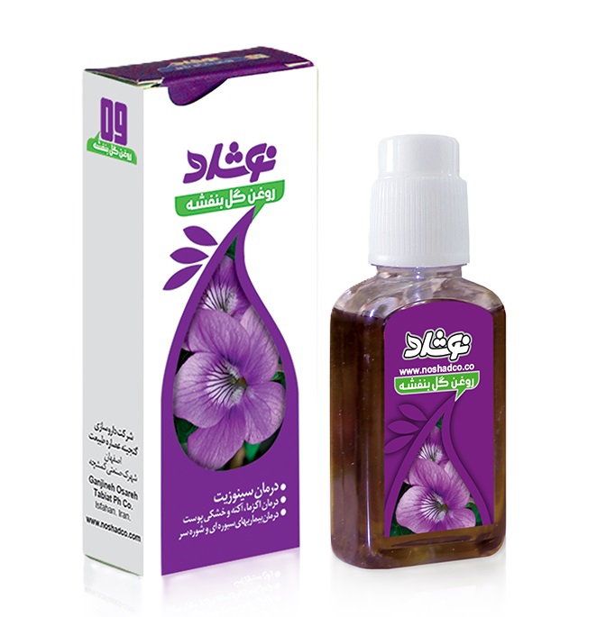 روغن گل بنفشه تولیده شده از عصاره اندام هوایی گلدار گیاه گل بنفشه در پایه روغن کنجد.